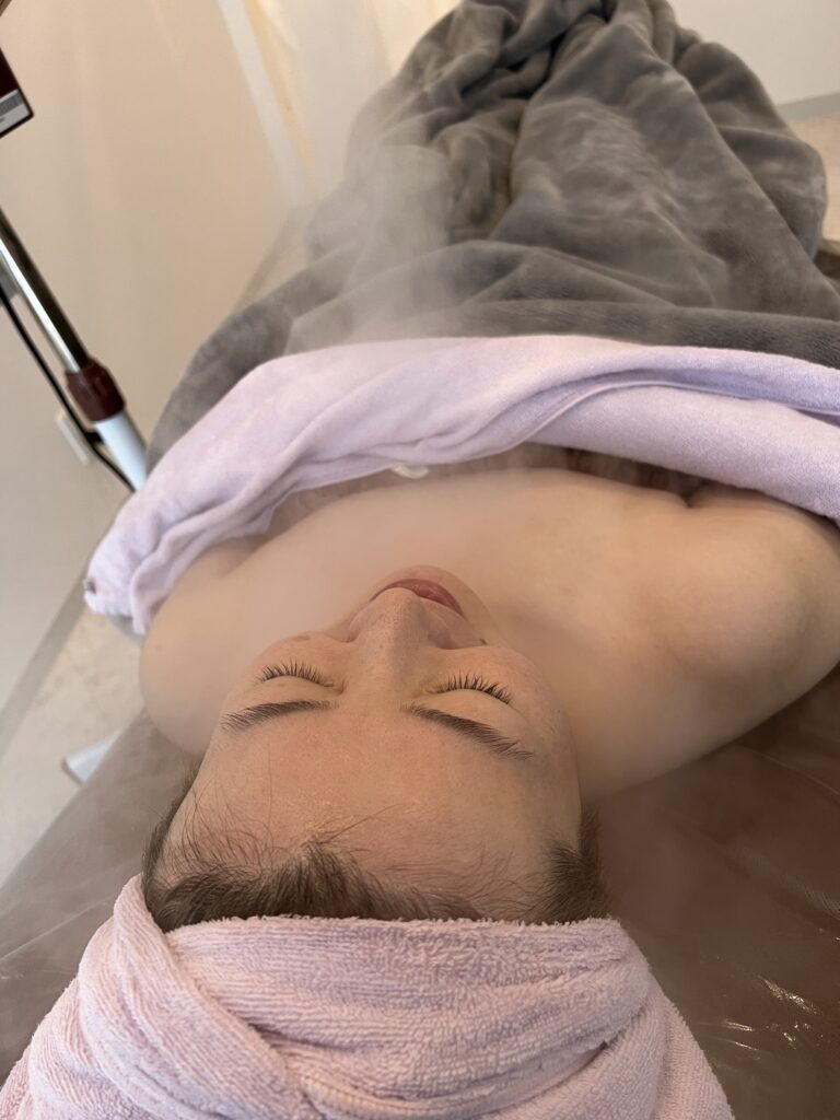 「彼女のためにハーブピーリングを導入しよう!」と決断し、一人目のお客さまになっていただきました。